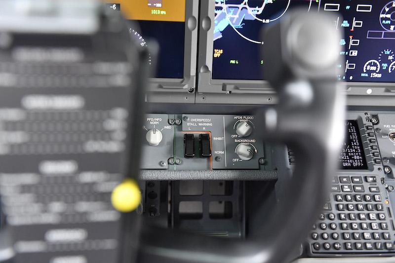 Switches in the cockpit of the Boeing 737-10 at Paris Air Show 2023.